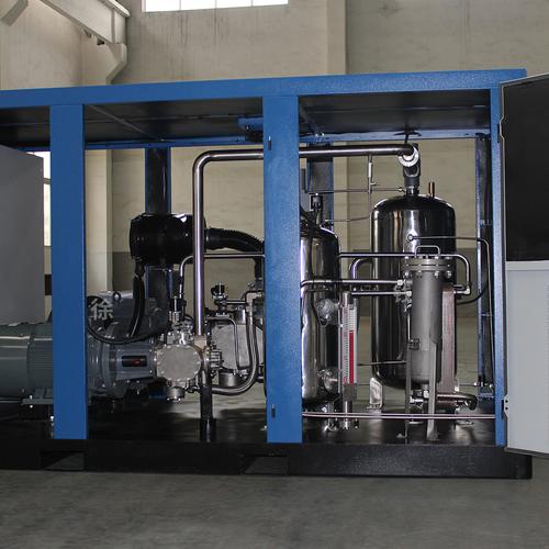 一、水润滑无油空压机的技术特点1.无油压缩,空气质量卓越水润滑无油空压机采用水作为润滑介质,完全替代了传统的润滑油。这种设计确保了压缩空气的纯净无油,避免了润滑油对压缩空气的污染。对于食品加工、制药、电子等对空气质量要求极高的行业,水润滑无油空压机能够提供最可靠的无油压缩空气解决方案。